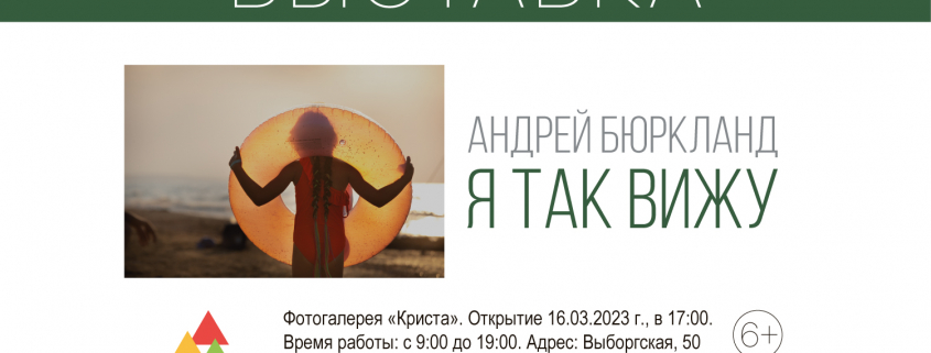Андрей Бюркланд – фотограф из Москвы. Искусство фотографии осваивал при поддержке Игоря Гаврилова – одного из самых известных и авторитетных фотомастеров России. Сегодня Андрей Бюркланд входит в число наиболее даровитых молодых авторов. Его снимки неоднократно представлены зрителям в рамках совместных выставок ведущих российских фотографов. В фотогалерее «Криста» 16 марта в рамках выставки с названием «Я так вижу» будет представлено около 50 лучших работ автора.