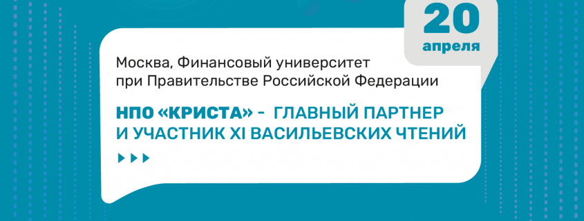 НПО «Криста» выступит в качестве главного партнёра и участника XI Васильевских чтений – ежегодного всероссийского форума «Общественные финансы: наука и практика», который пройдёт 20 апреля в Москве, в Финансовом университете при Правительстве Российской Федерации.