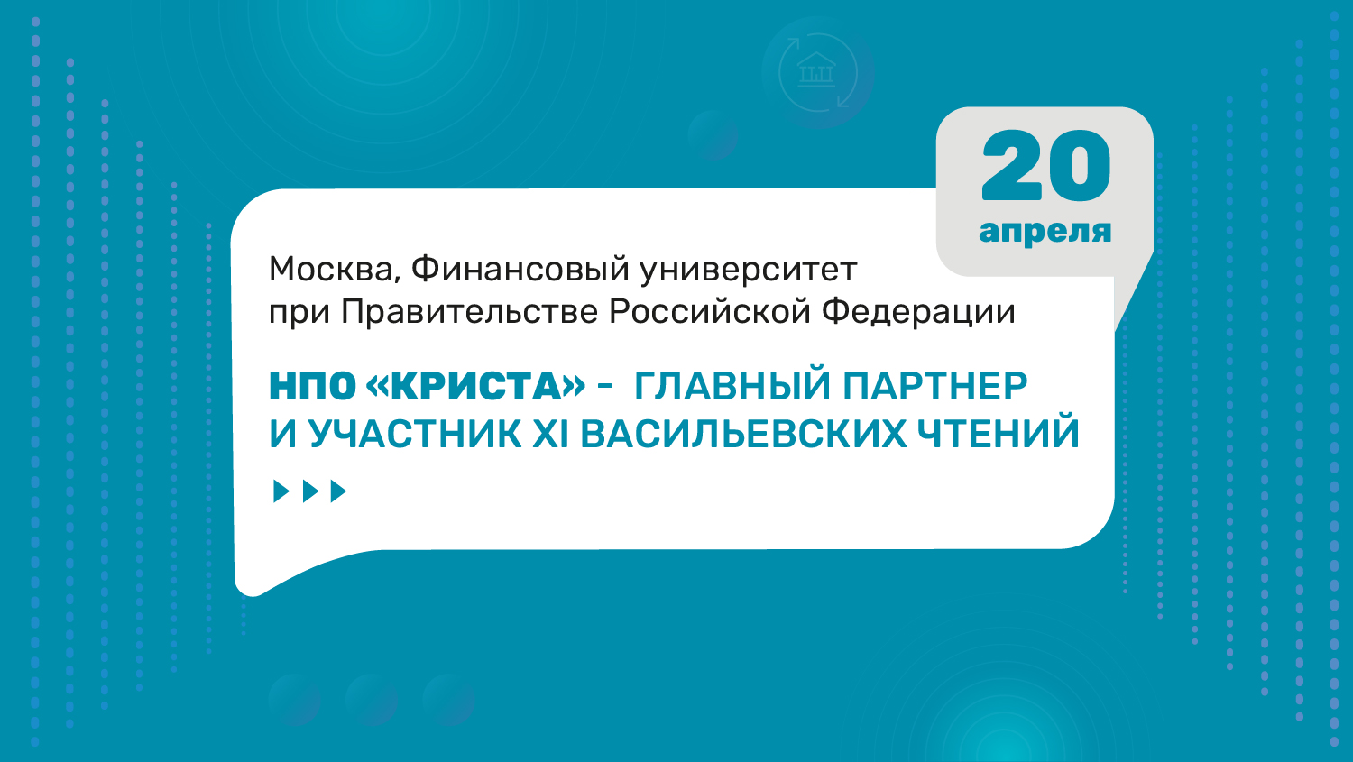 НПО «Криста» выступит в качестве главного партнёра и участника XI Васильевских чтений – ежегодного всероссийского форума «Общественные финансы: наука и практика», который пройдёт 20 апреля в Москве, в Финансовом университете при Правительстве Российской Федерации.
