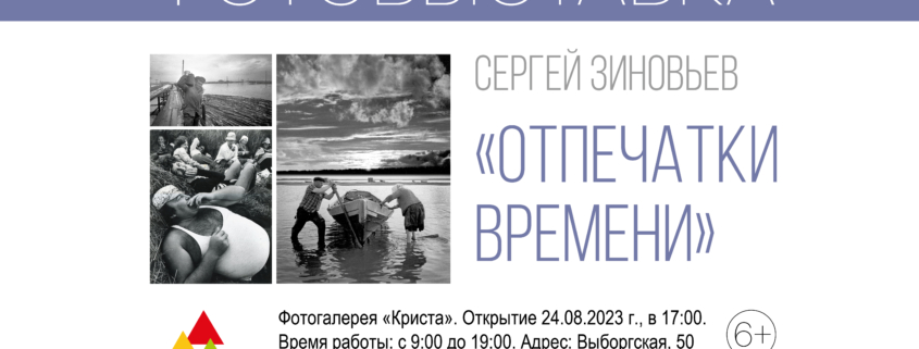 24 августа в 17 часов в фотогалерее «Криста» состоится открытие персональной фотовыставки известного российского фотографа Сергея Зиновьева «Отпечатки времени».
